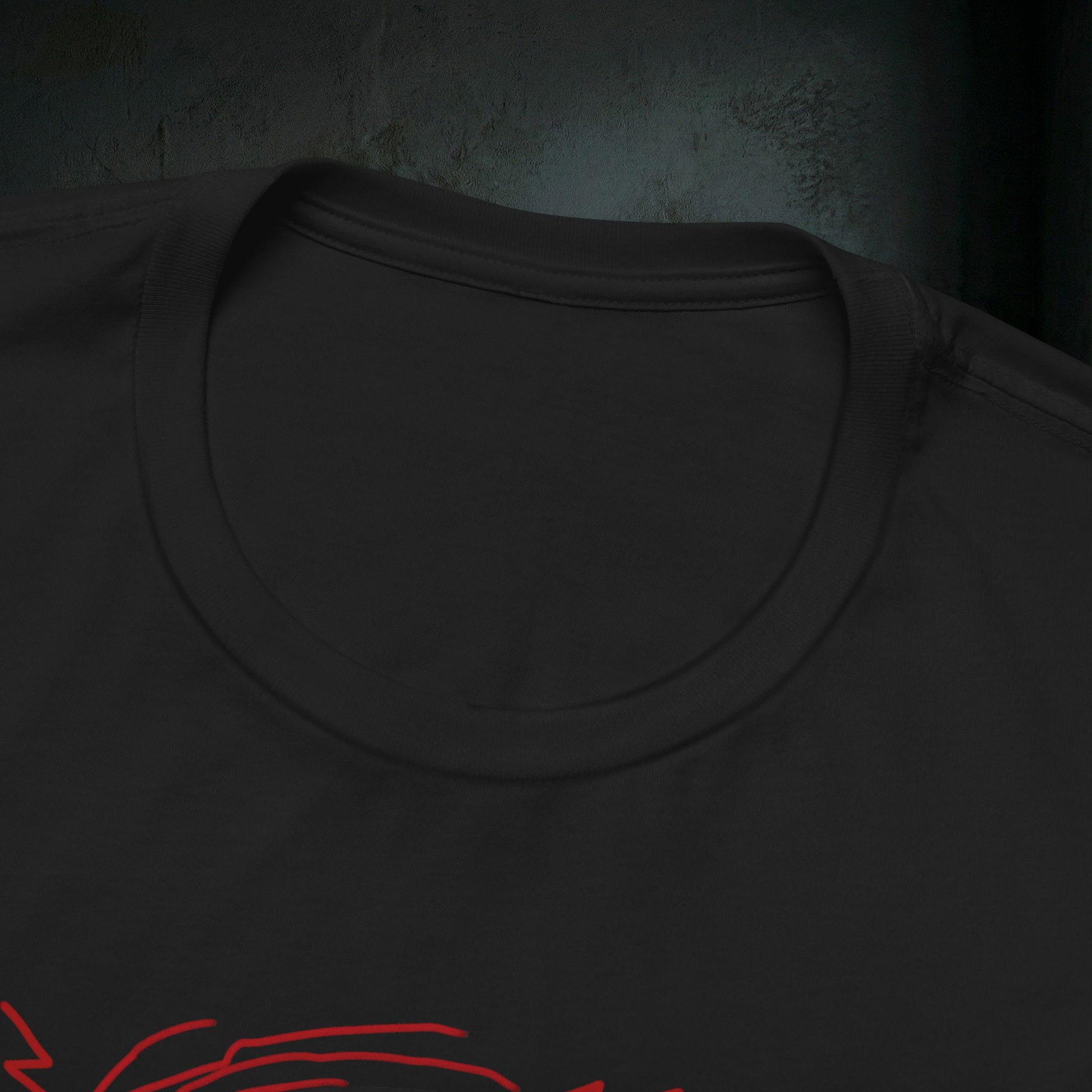 The construction is built to handle your worst days. We used side seams to maintain structure and shoulder tape to prevent stretching, so the shirt keeps its shape even when you're falling apart. The high-quality digital print ensures the red scribbles and the "Hello My Name Is" tag detail stay crisp wash after wash.